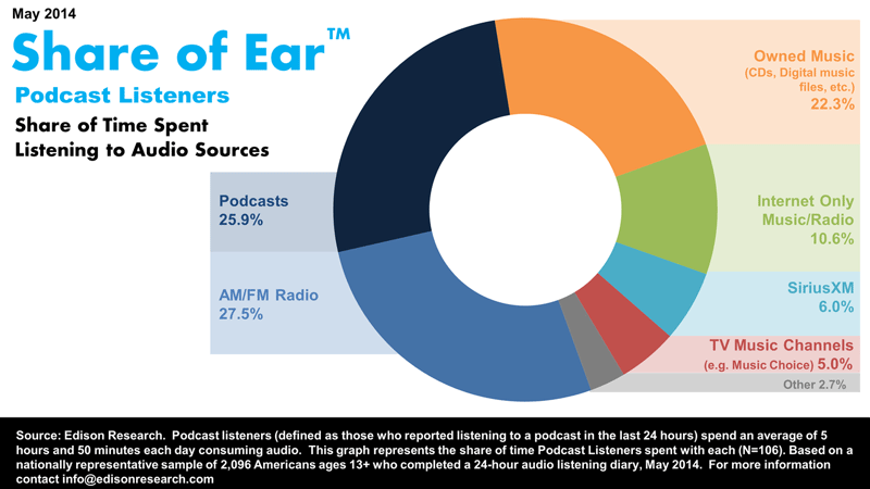 Right now, “it’s a lot easier to get someone to go from one podcast to another podcast than it is to get them to go from listening to no podcasts to listening to your podcast,” says Matt Lieber, Blumberg’s Gimlet cofounder. But presumably, the listening hours of existing podcast fans will be maxed out at a certain point. If the short-term question is how to get your podcast into the ears of someone who already likes podcasts, the long-term question is how to get podcasts into the ears of someone who doesn’t already listen to podcasts. More and more people are listening in their cars. And it helped that iTunes recently created a separate app for podcast listening. But podcasts still tap only a fraction of the audience that other media reach.