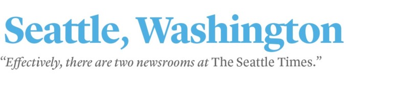 This can be a challenge inside the newsroom of the Times, where, among 194 employees, 75 percent are white; only 15 people on staff are Asian, and 9 are black. The culture of the office can be hard to change, in part because, as internal Times documents obtained by CJR show, there’s a generational gap. “Effectively, there are two newsrooms at The Seattle Times,” a survey of 80 staffers found this summer. Long-time employees are “much more likely to be satisfied and to feel valued by senior leaders that they’ve worked with for years,” whereas “young employees are much more urgently worried about pay and family care, do not feel valued by the newsroom, and have deep concerns about its future.”