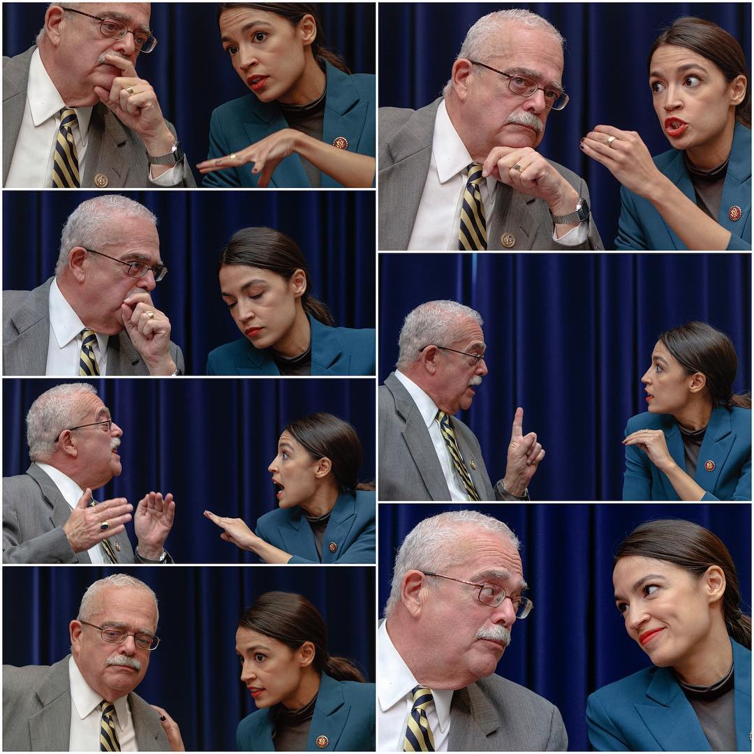 The array, which he composed and posted to his Instagram feed, captures Ocasio-Cortez’s engagement with fellow Democratic Congress member, Gerry Connally. The example of legislative comity (which, Ocasio-Cortez, herself, likened to a “road trip buddy comedy”) not only counters many of the negative stereotypes, but aptly embodies still another asset she deftly deploys. That’s her sense of humor.