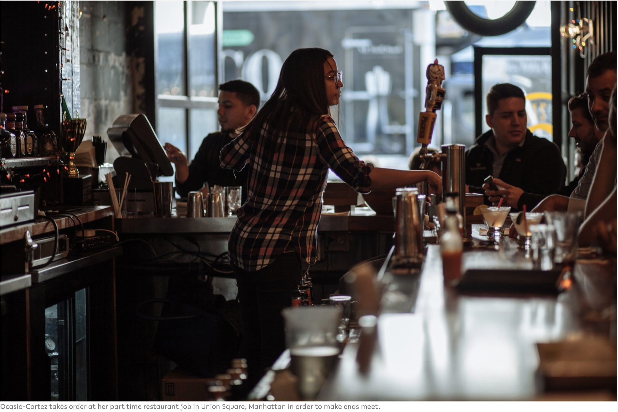 Some of the defining photographs of her campaign were taken by a young photojournalist, Jose Alvarado, Jr., a freelance photographer and childhood classmate who was granted broad access. Many of those images can be seen in a piece in Vice’s Broadly, published in June. Among the most distinctive include the now well-known, biographical image of the financially struggling Ocasio-Cortez working part-time at a restaurant in Union Square in New York: