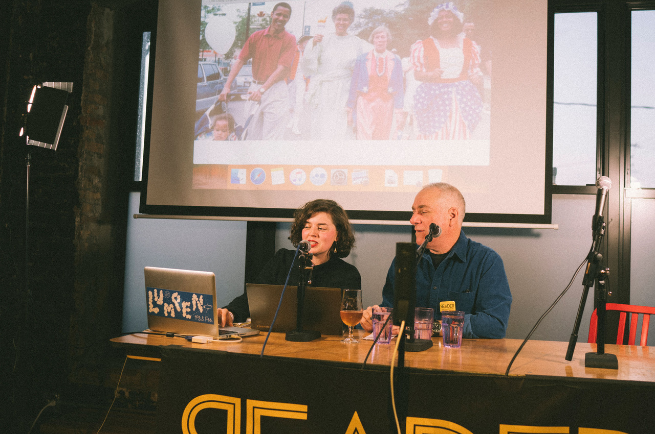 Reader reporters Maya Dukmasova (left) and Ben Joravsky at the Reader’s March election-night event at Mars Brewing Company. Photo by Alexa Viscius.
