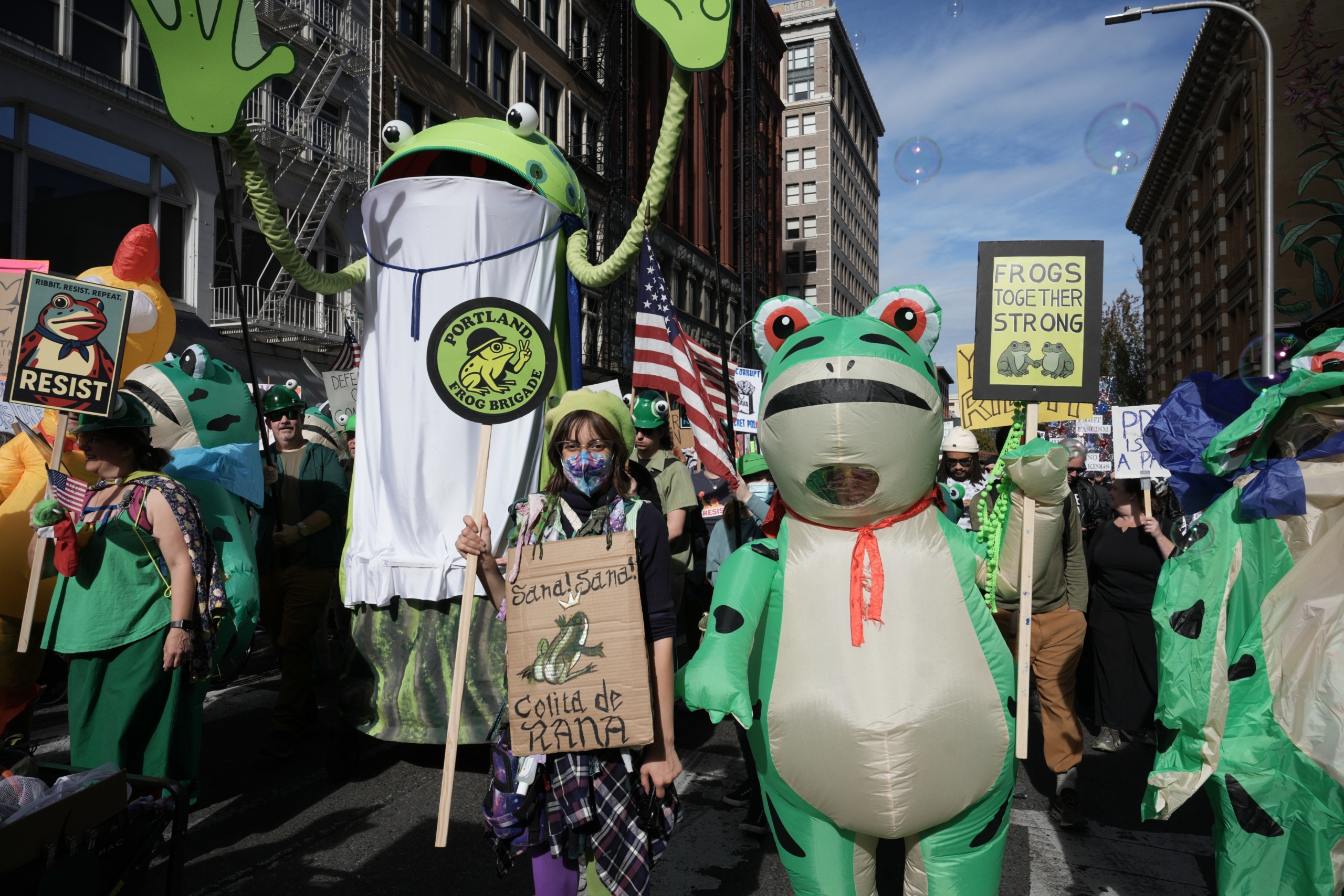 Brown got the idea to distribute the costumes earlier this month, after a Portland protester in a frog costume made headlines when they were pepper-sprayed. “The way the media handled the frog wasn’t how the media handled the person who got shot in Chicago,” Brown said, noting that in his view the pepper spray attack on the frog had provoked more outrage.