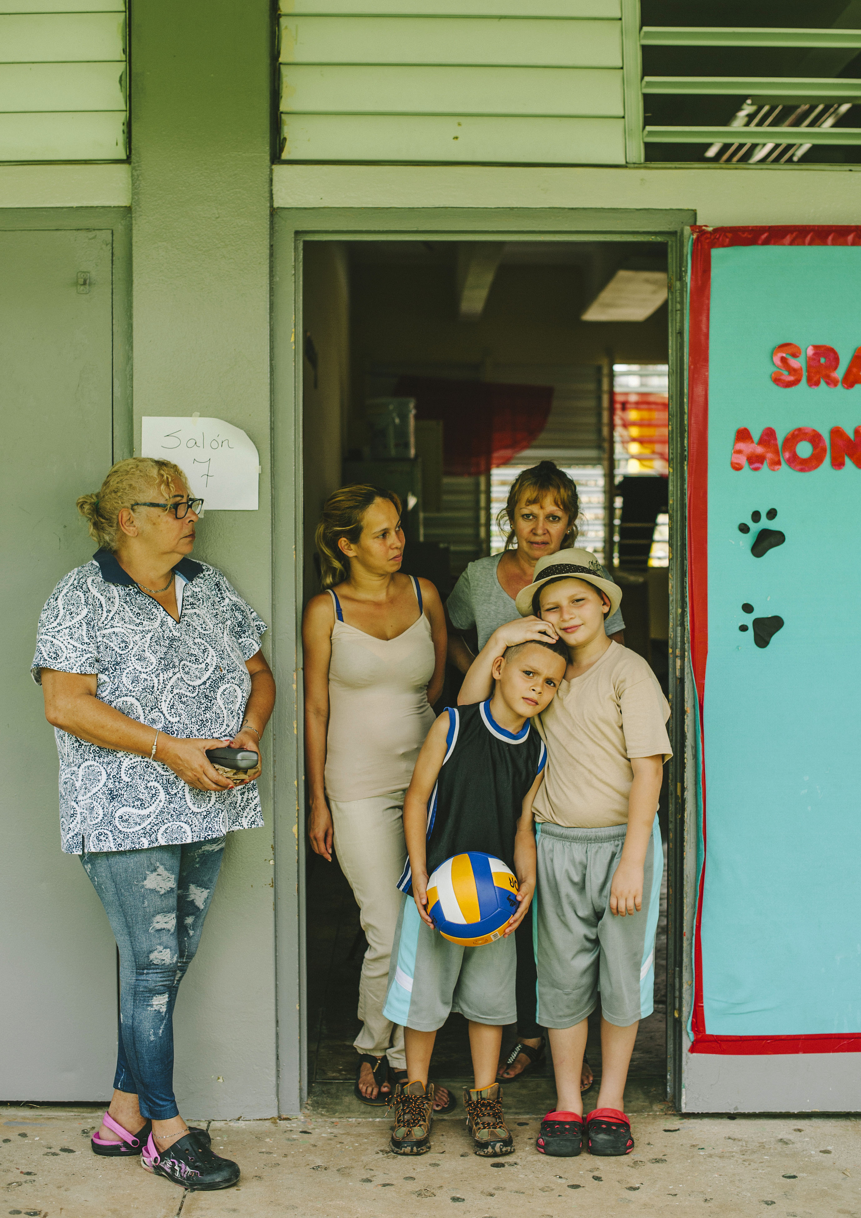 Gloria E. Colon, and from left, Glenda Ruiz, her mother, Rosa Rodriguez, and Ruizâs two sons, Josh Rivera, 6, and Abdiel Rivera, 8, are using a classroom at Judith Avivas Elementary School in Utuado as their temporary home after Hurricane Maria destroyed their house. âSwikar Patel/Education Week