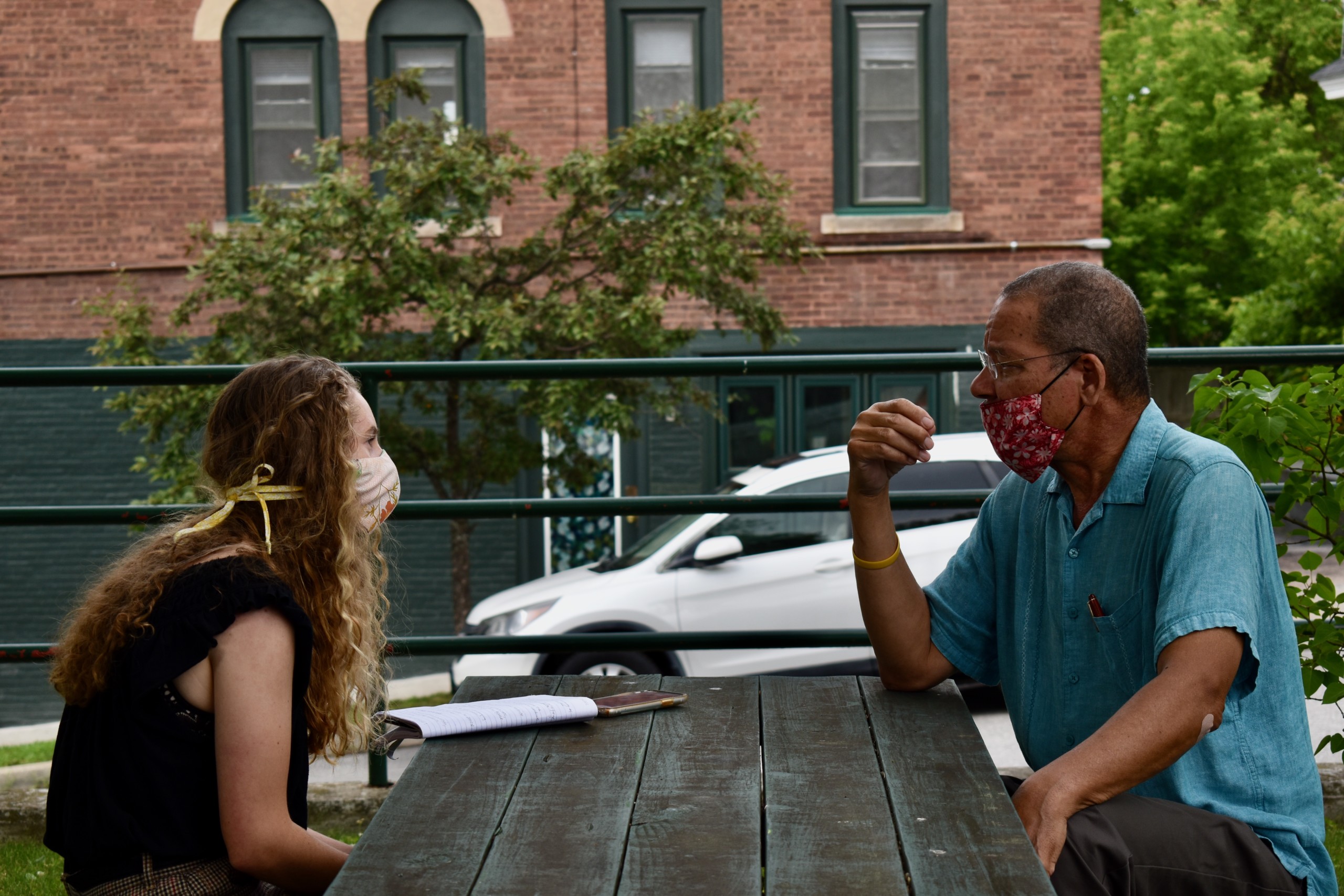 CNS reporter Jenny Koppang interviewing Hal Colston, Deputy Mayor in the City of Winooski // Photo courtesy Community News Service
