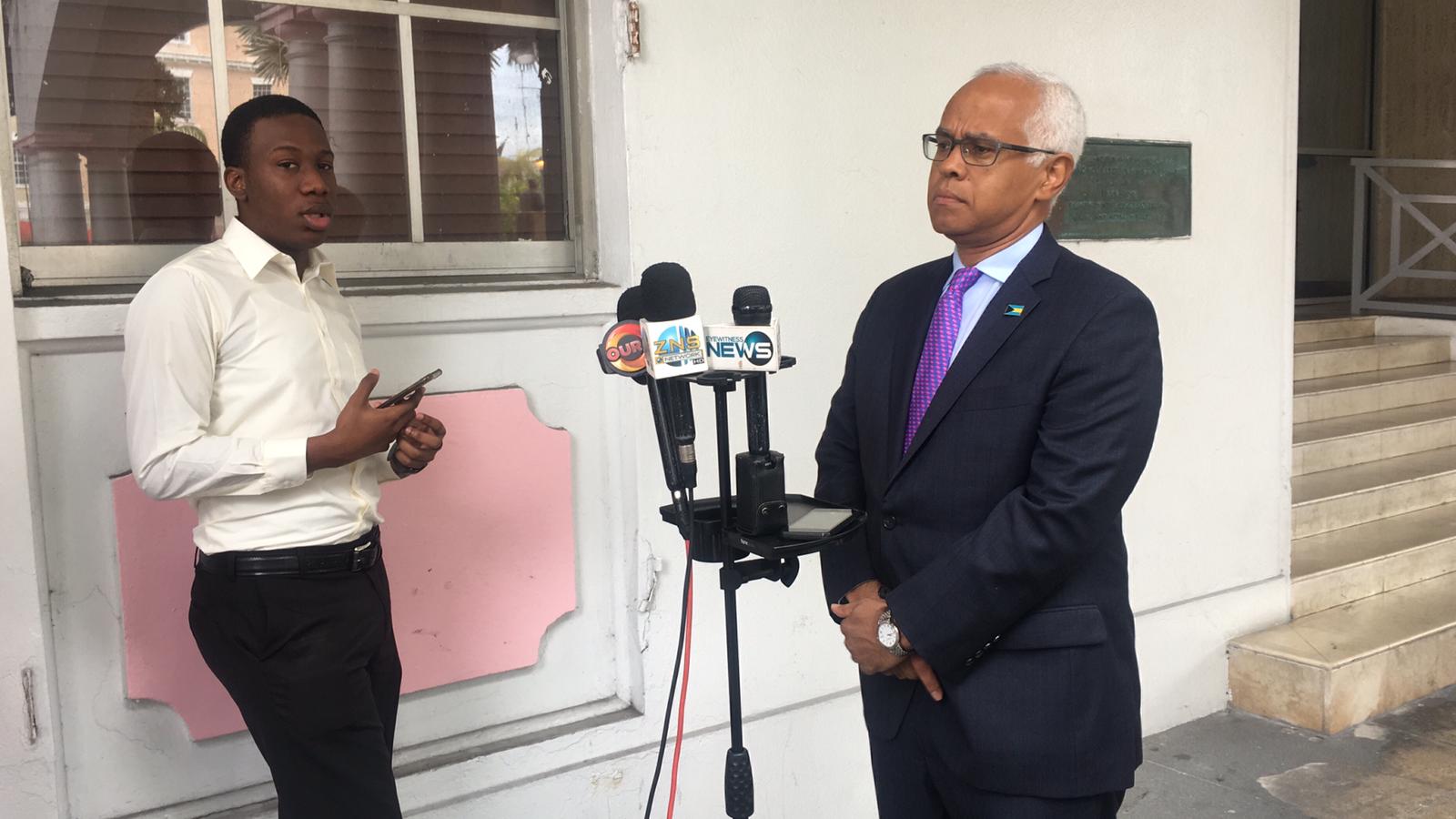 Reporter Berthony McDermott interviews Dionisio D’Aguilar, the Bahamian Minister of Tourism and Aviation. (Photo courtesy of Berthony McDermott)