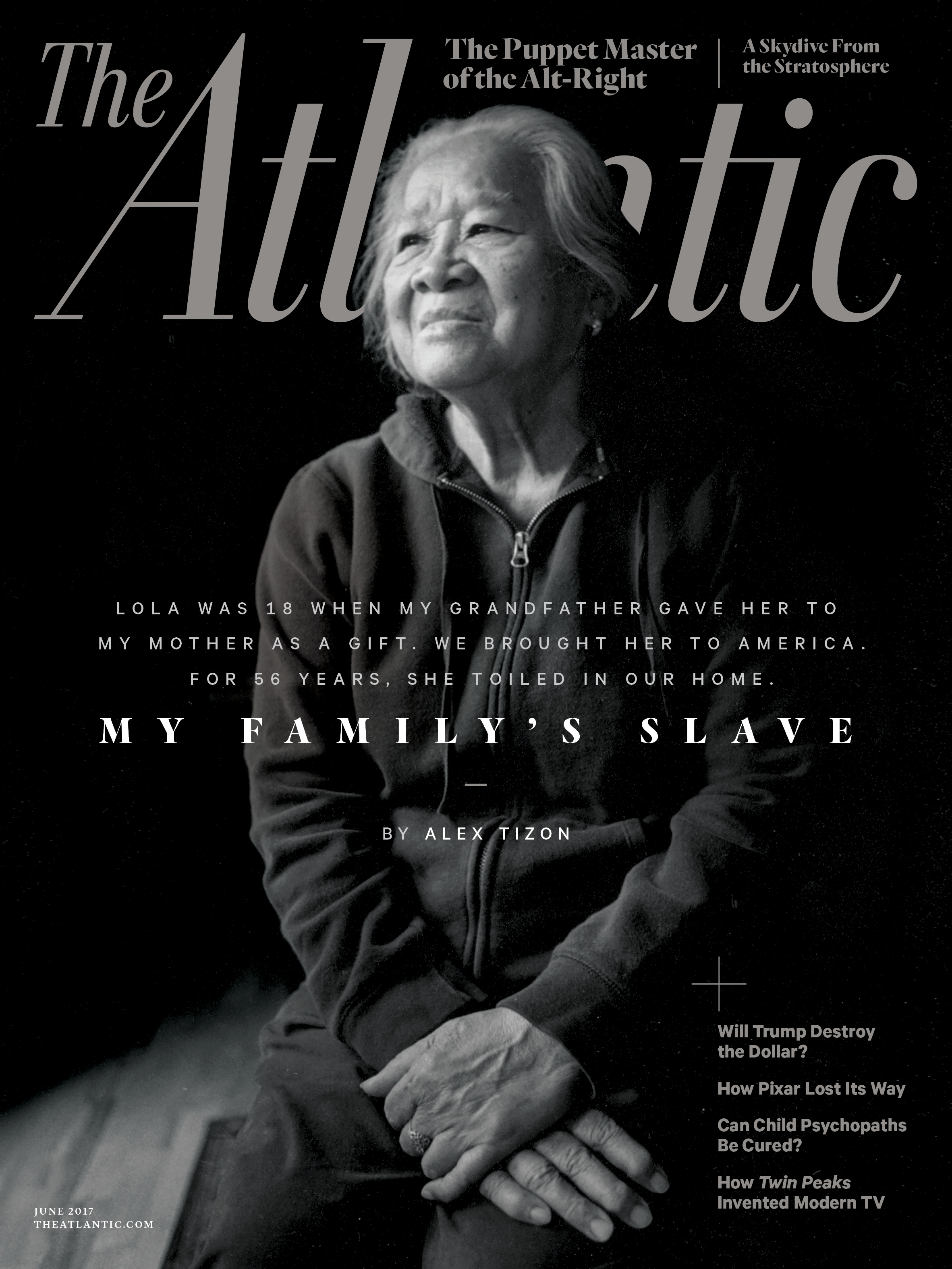 Alex Tizon’s essay “My Family’s Slave” in The Atlantic this week caused all the upheaval one has come to expect when that publication issues a detailed and gorgeously written cover story that dives into race, gender, and human rights. The publication has a long anti-slavery tradition—it was founded by abolitionists in 1857.