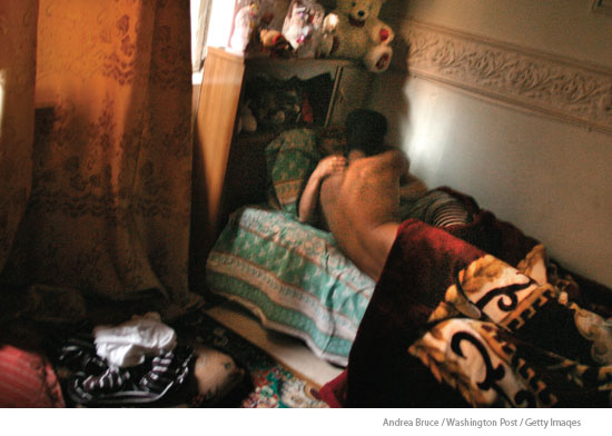 There is a story about an Iraqi prostitute that I worked on for almost a year. I interviewed almost thirty prostitutes before I found someone who was willing to talk to me. But the person I ended up following, her name is Halla, she got it. She was pretty much like, “My life sucks and I shouldn’t have to sleep with men to feed my children and so yeah, you can take pictures and show everyone exactly what is going on.” She basically became my best friend here. I’d hang out with her in between all the car bombs, in between all the embeds and violence. I would always go back to her thinking she is really what told the story to me of 2004 and Iraq. And she told it from a woman’s perspective and this war is so told by men and through men. Eventually she would just ask her customers straight up. It was very casual, they would come to her door and her children would be playing in the living room, and I’d be there, and the guys would be like, “No, I’m not going to let her photograph us.” Because I knew, that’s the one picture you had to get, to actually show why prostitution is horrible. And so one day a young client of hers came to the door and he said he didn’t care if I took pictures and so I took pictures for as long as I could handle it personally.