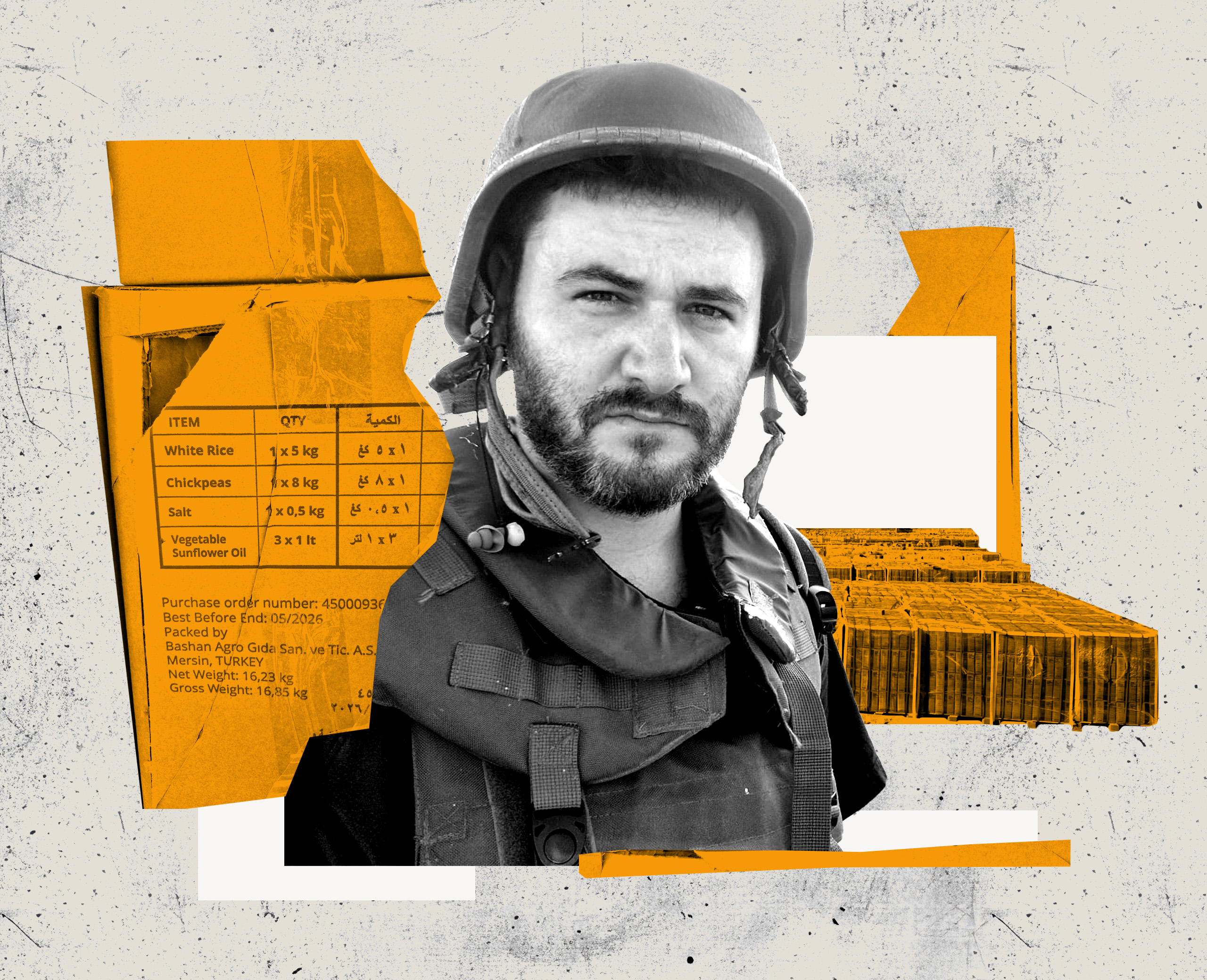 A few days after receiving the email, he drove to Kerem Shalom, a crossing on the Gaza-Israel border—the name translates as “Vineyard of Peace”—where military officers handed him a bulletproof helmet and a flak jacket and drove him across. “Three, four minutes, twists and turns, and we saw what we saw,” Fischberger told me. On a wide expanse of concrete sat pallet after pallet of supplies earmarked for Gaza: cooking oil, flour, bags of rice, tomato paste. Also around him were content creators bearing selfie sticks and filming on their phones.