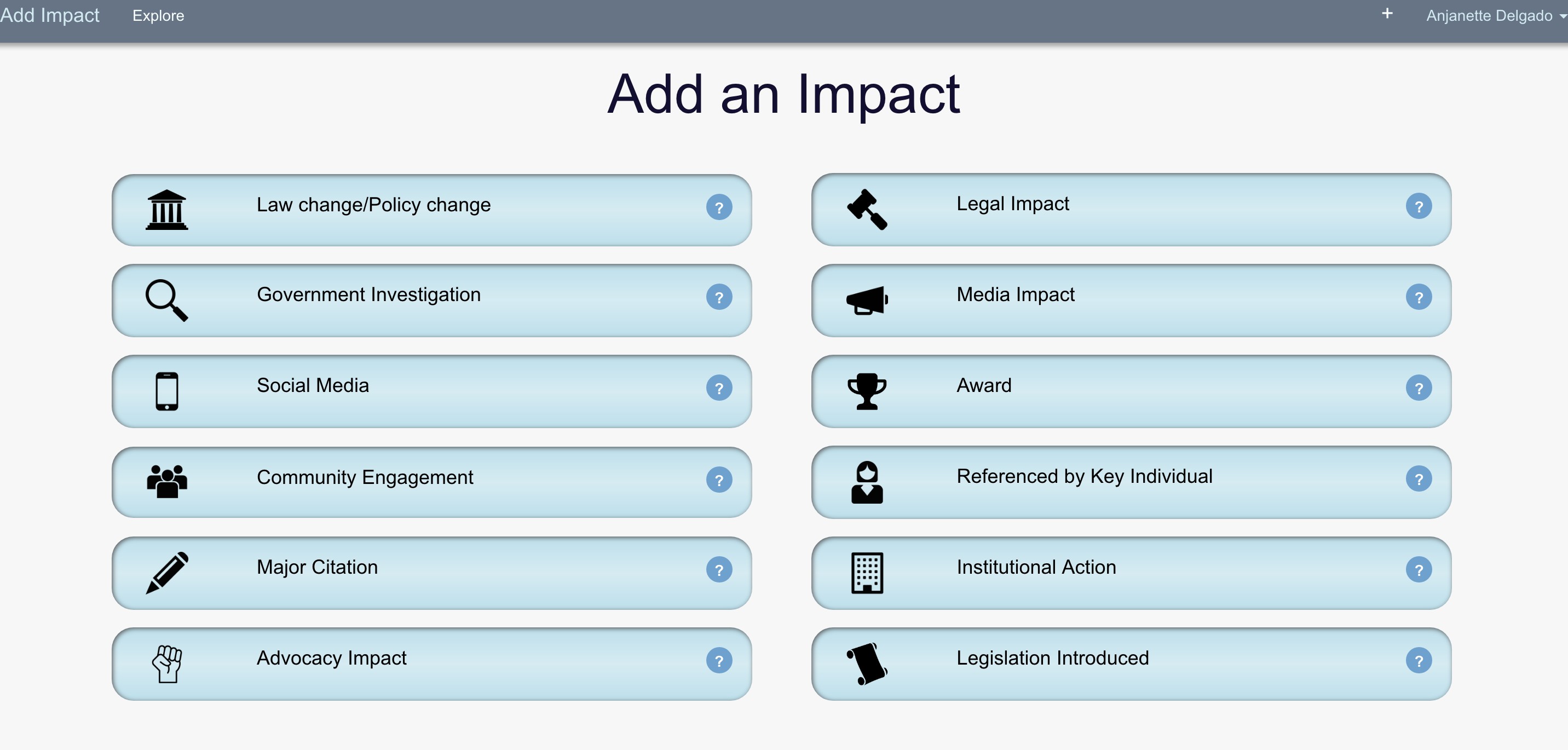 In the online interface, reporters choose from 12 kinds of impact for their workâsuch as policy change, major citation, and government investigationâ, add specific details, and track how their stories change over time. Editors can quickly see how their reporters are doing, as well as pull out information for columns, award applications, and performance reviews.