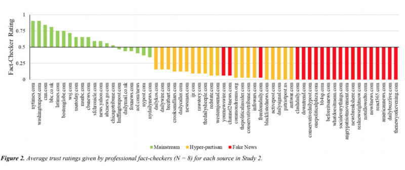 “Despite substantial partisan differences, we find that laypeople across the political spectrum rated mainstream sources as far more trustworthy than either hyper-partisan or fake news sources,” write Gordon Pennycook, a professor at the Hill/Levene Schools of Business at the University of Regina in Saskatchewan, and David G. Rand, a professor at the Massachusetts Institute of Technology’s Sloan School, in “Fighting misinformation on social media using crowdsourced judgments of news source quality.” Pennycook and Rand, who drew on two polls to reach their conclusions, propose using the crowd’s collective sense of trust and distrust as a deciding factor, to elevate more credible sites and push less credible sites down.