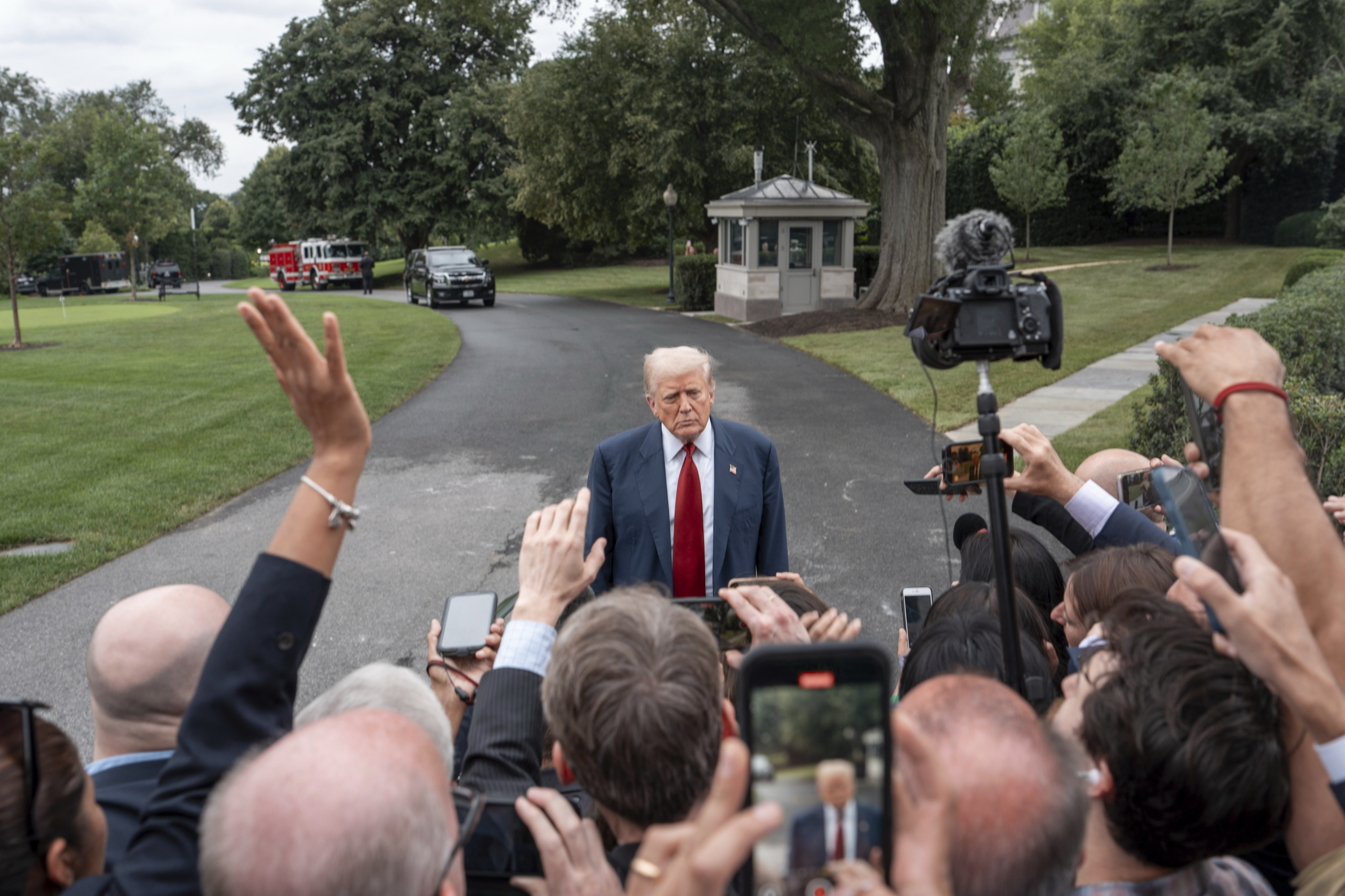 A responsible reporter might’ve asked Trump, “Why do you say the 2024 job numbers were revised after the election, when this happened in August?” No one asked. Instead, Sunday’s gaggle elicited Trump’s pronouncements on the color of the stone in the paved-over Rose Garden and the political affiliation of Sydney Sweeney.