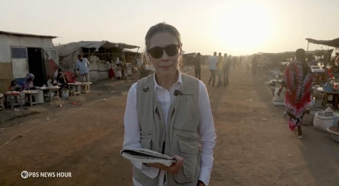 One notable exception has been PBS NewsHour, which has consistently covered the conflict since it began. Last week, Ann Curry filed a heartbreaking report for the program from a camp for displaced people in South Sudan. In one particularly harrowing account, Halima Omer, a refugee, told Curry that she fled Khartoum after aerial bomb raids and spent years traveling until she finally reached the camp. âThere was a woman we spoke to,â Curry told viewers, âwho carried her mother, her elderly mother, on her back because she was aging and ran with four kids and keeping them all in line to leave as the bombs were falling. And she said that her mom eventually died.â Omer does not know if her husband survived.
