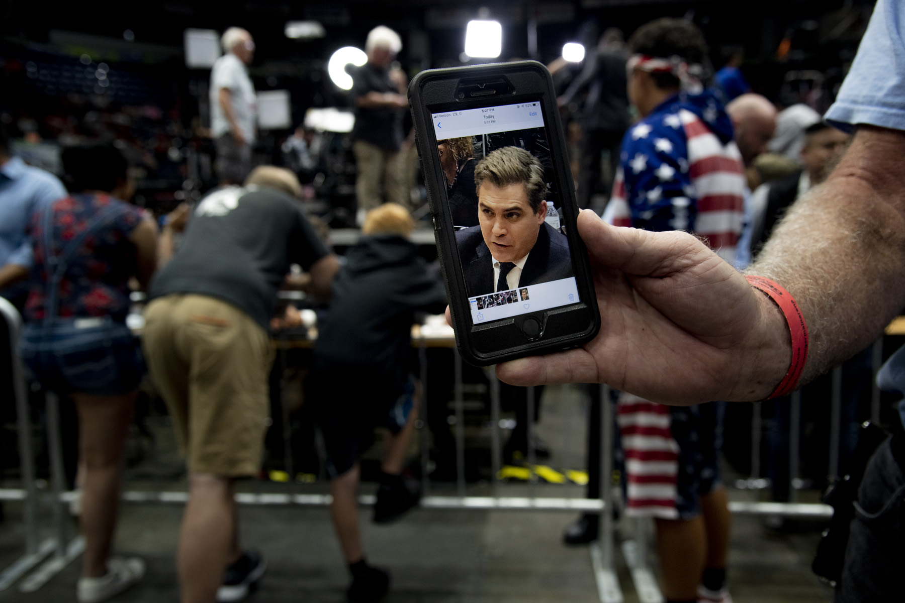 For the Trump audience, demeaning Acosta is a bonding experience. He is both an enemy and a selfie trophy. I saw a father directing his young daughter to walk by the press cage and take a photograph of Acosta with her phone. When she did, he put his arm around her in affirmation. For Acosta, the experience appears harrowing. The CNN anchor comes across as gentle and unassuming in person, but clearly the attention from Trump’s supporters is exhausting, mystifying and no doubt distressing as he could be seen working with security guards on either side of him.