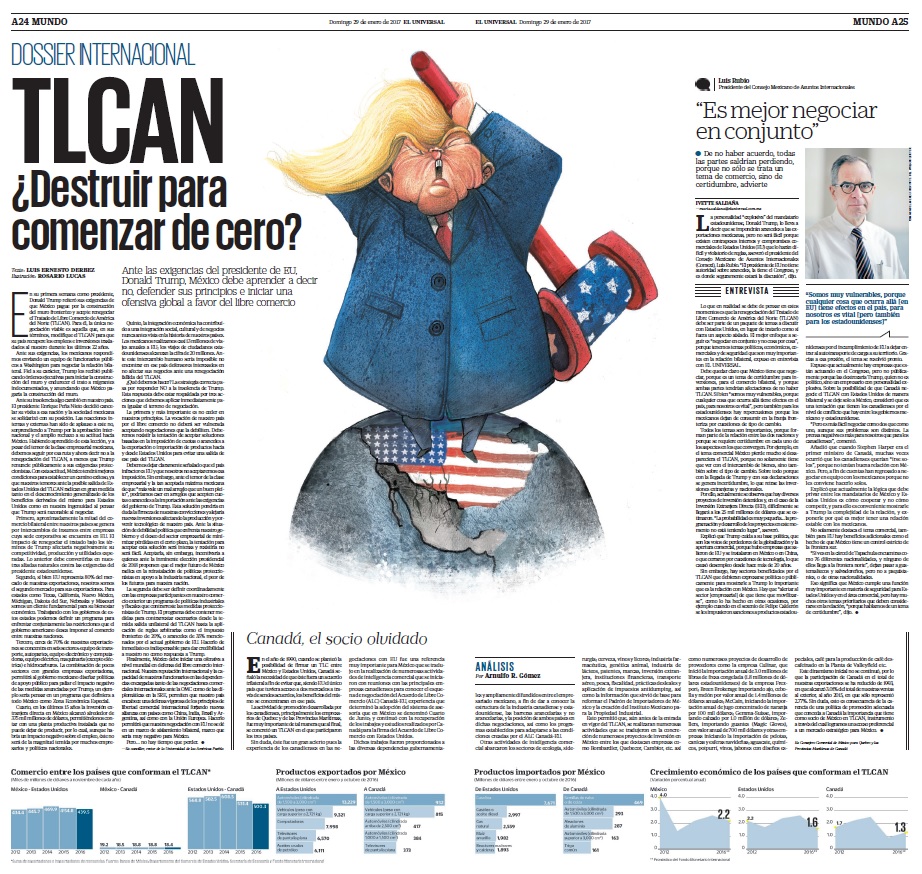For Mexicans, the construction of a wall is not the only concern under a Trump White House. The trade agreement NAFTA, another piece of the Trump agenda that would greatly affect the Mexican economy, inspired this spread in the daily El Universal.