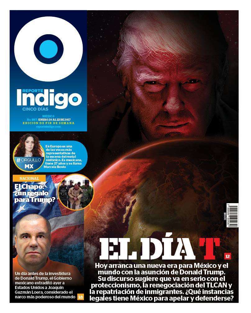 On Inauguration Day, Indigo carried a somber image of Trump with the headline that translates to “D Day.”