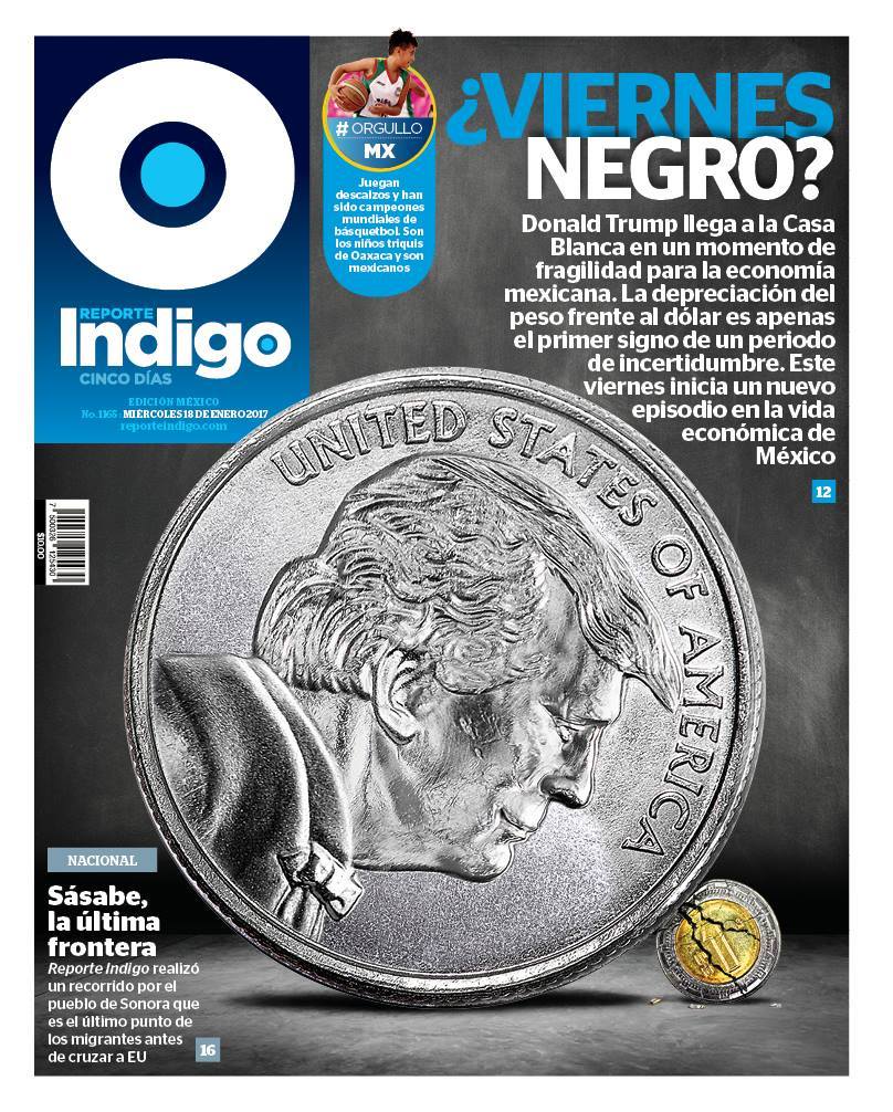The Mexico City daily Indigo deals with Trump and the economy in this powerful front page comparing US currency to the Mexican peso.