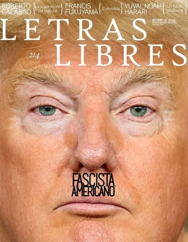 Behold the magazine cover. Editors and designers have long recognized that nothing makes for a better cover image than a person. When that person is Donald J. Trump, it usually is more than just his photograph, as seen in these examples from Letras Libres (Mexico and Spain), Ad Busters, and Der Spiegel (Germany). Meantime, The Village Voice zeroes in on Trump’s signature.