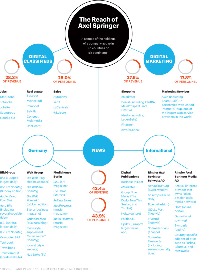 Whether journalism will be part of Axel Springerâs business in 20 years, however, depends on whether Döpfner can find a way to transform the companyâs last legacy publications into successful moneymakers. Classifieds canât subsidize the news forever. âIn the analog days, classified ads were unthinkable without a newspaper,â he says. âToday, that is not the caseâthey can exist perfectly well without journalism.â