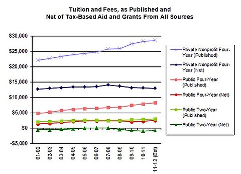 — This post at The New York Times Economix blog shows how the price of college tuition is cheaper than most of us assume. You’ve got to look past the sticker price.