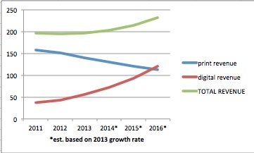 But realistically, chances are that within the next few years, digital growth will level off while the print side continues its steady decline. Not that I want this. Just that that’s what’s likely to happen.