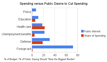 I like the rotisserie baseball comparison. Ezra Klein found another good way to illustrate the mismatch between what’s actually spent and what areas the public wants to cut: