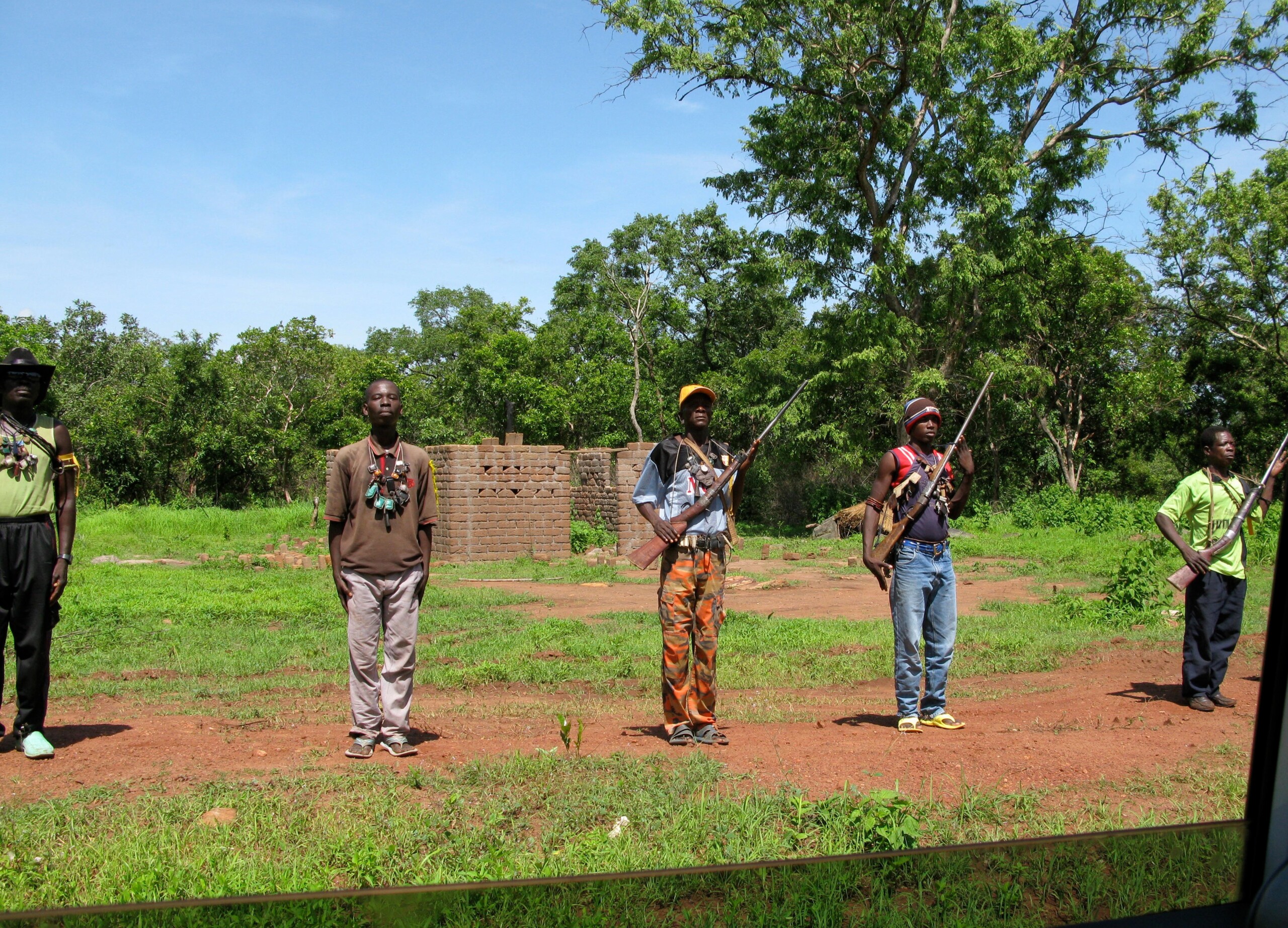 Our destination was a secretive rebel base known as Point Kilometre 100, or PK100. It was situated about a hundred kilometers north of Bangui’s main Roundabout of the Republic, from which all the country’s distances are measured. Somewhere along National Highway 4, we came upon a giant mango tree. In front of it, a group of anti-balaka blocked us. More fighters emerged behind. Yusuf could not move in either direction, so he stopped. After a few seconds he cut our engine. A tall, broad-shouldered man in military camouflage yelled. I pushed my door open a crack. About three hundred guns pointed at me.