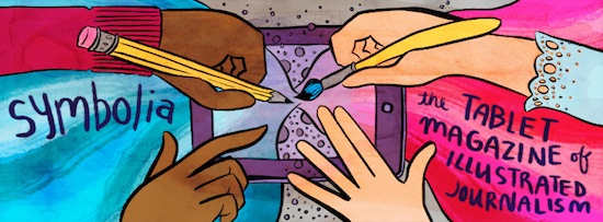 Symbolia is the first U.S. publication dedicated exclusively to “comics journalism.” While serious graphic novels — like Maus or Persepolis — have proven that comics can handle difficult subjects, serious nonfiction comics are still rare. Perhaps the best-known graphic journalist is Joe Sacco, who has reported from Bosnia and Palestine and published his work in Harper’s and The Guardian. “It’s a small field because it hasn’t been around in its current incarnation for too long. Give it some time. Let some of these cartoonists build on their work,” said Sacco.