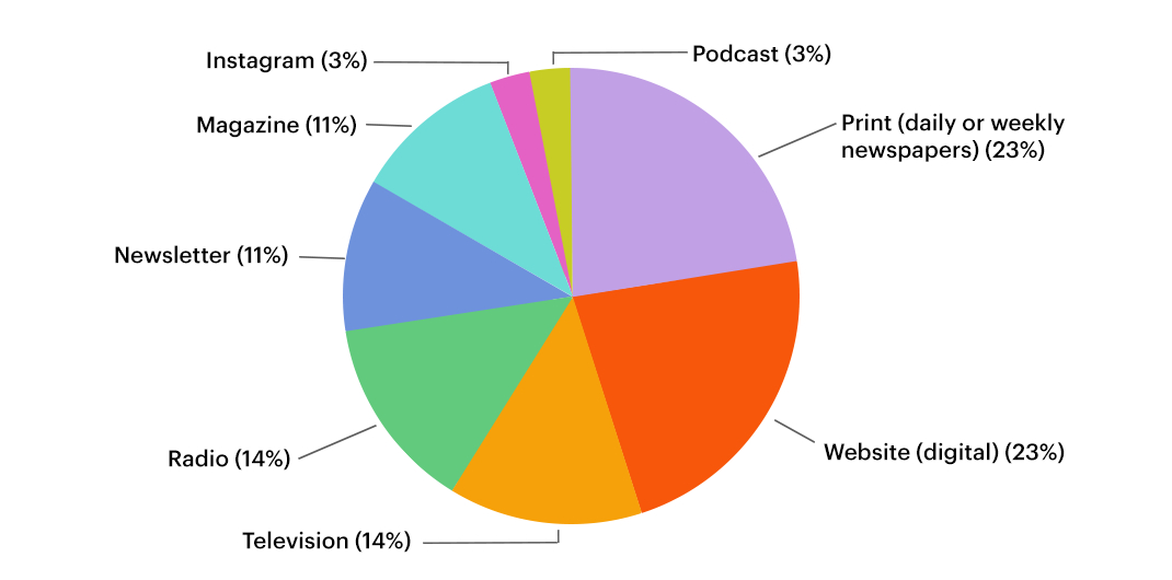 It is likely that this number, nineteen, is an undercount. Capturing local outlets that serve minority communities (whether ethnic or identity-based) and those that publish in a language other than English has some well-established difficulties, including that they are less likely to be included in PR-oriented databases such as Cision, on which many maps rely for baseline lists. They are also more likely than mainstream (i.e., English-language and general-audience) outlets to appear only in print, or to live entirely on a platform such as WhatsApp, making them less prominent or even invisible in online searches for news outlets serving a particular area. We will discuss ideas for better capturing these outlets in the Conclusion and Recommendations sections.