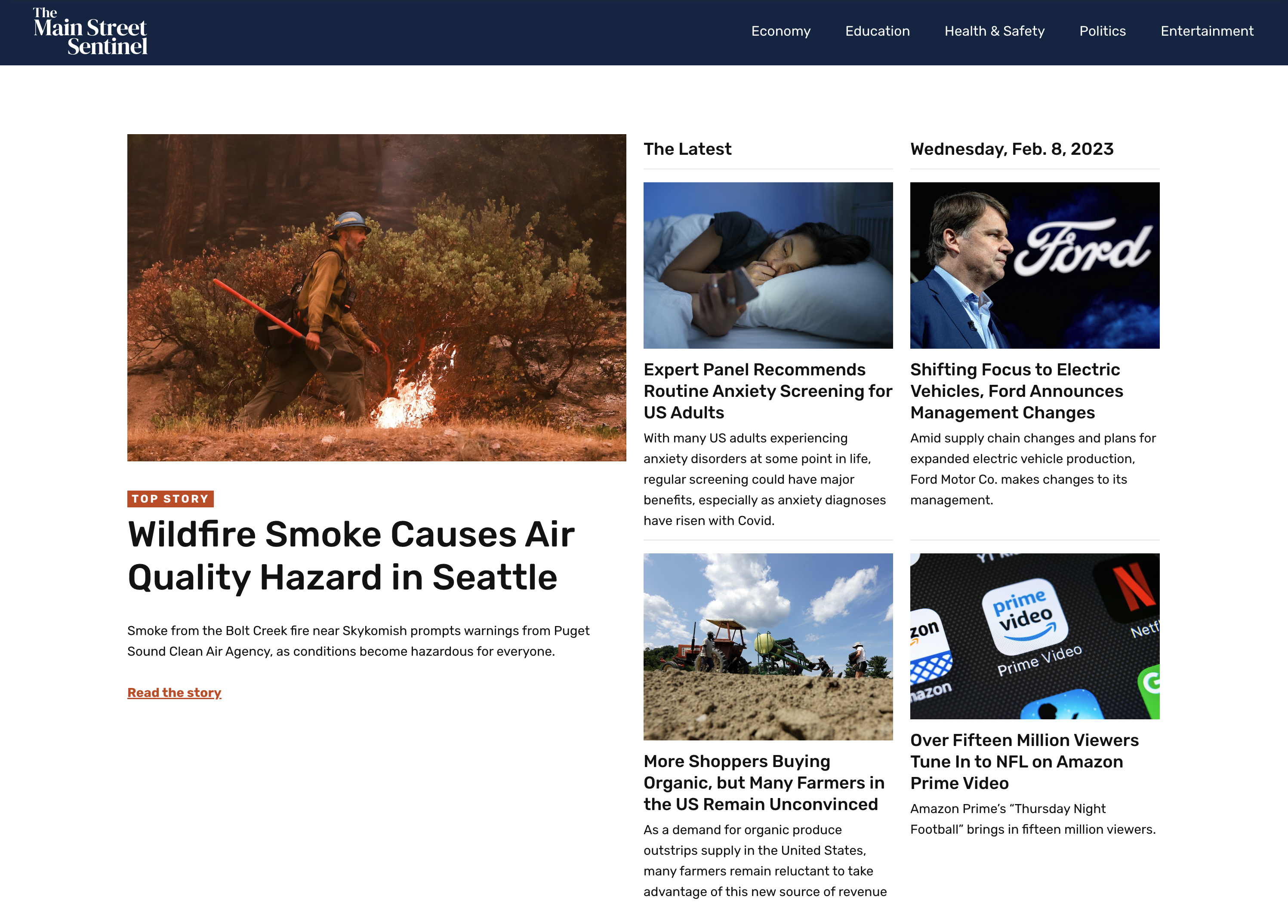The Main Street Sentinel comprised three digital entities—a website, a Facebook page, and an Instagram account, all of which were created in February 2022.