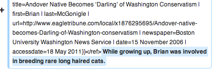 Such edits potentially hold special importance during campaign season, with Wikipedia entries often candidates’ first search engine result. To be sure, @congressedits doesn’t track changes made from IP addresses that aren’t on the Hill, so editors elsewhere – connected to Congress or not – can still make changes that go unnoticed. It’s also likely that staffers or elected officials wishing to edit entries will quickly wisen up and do it outside of the office.