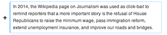 Politicians frequently moonlight as would-be media critics, hoping to draw attention to issues in his or her wheelhouse. This politically motivated edit from Tuesday morning has already been removed. And while CJR won’t change its coverage after this press critique, we’ll happily use it as clickbait.