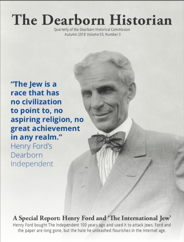 “100 Years Later, Dearborn Confronts the Hate of Hometown Hero Henry Ford” was slated as the cover story of The Dearborn Historian, a quarterly published by a historical commission appointed by the mayor. It has no online presence and its subscriber list includes about 230 museum members. A courtesy copy of the newly printed issue was delivered to Mayor John “Jack” O’Reilly in late January.