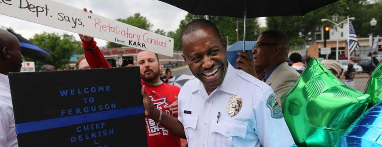 Telegenic and well-known, would Moss go into politics? Take a job with a local television station? Instead, after 32 years in Miami, he answered the call to become chief of the Ferguson, MO police department, transitioning in May from policing a big city with big city problems to running a department with 44 employees and nationally-known problems.